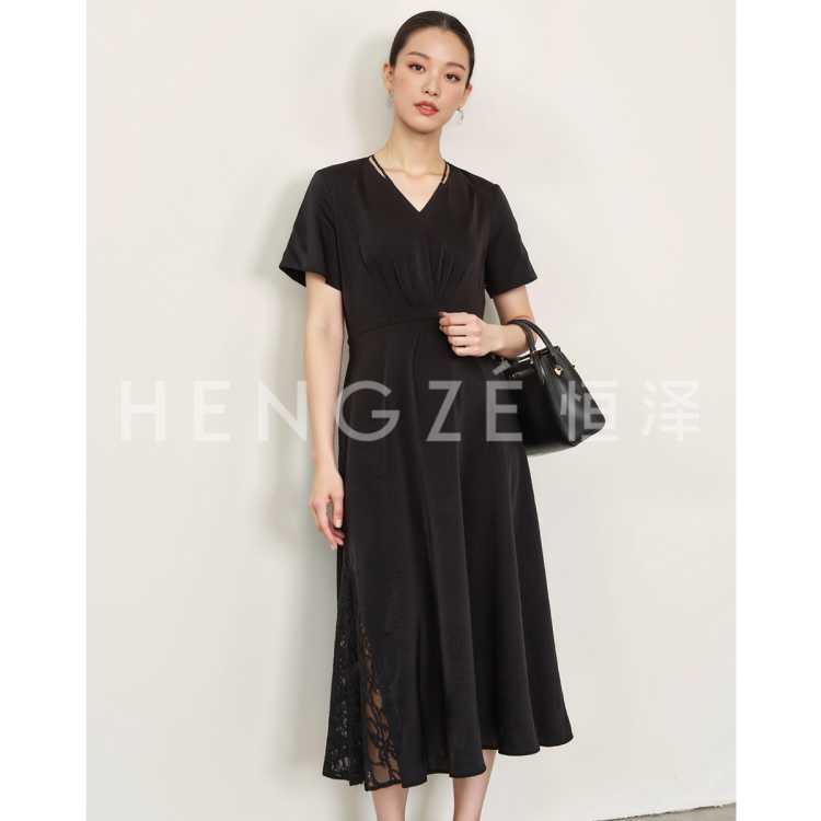 恒泽 纯色连衣裙女夏季高级感气质连衣裙25新款休闲度假A字裙女