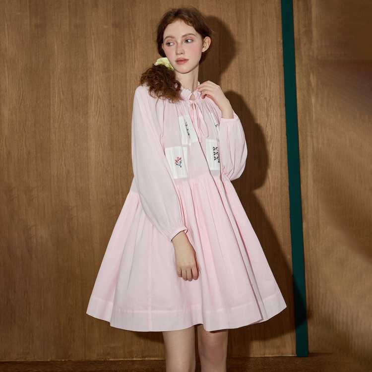 COOLHUT 花边贴布绣花灯笼袖娃娃长袖遮阳宽松减龄2025秋季连衣裙