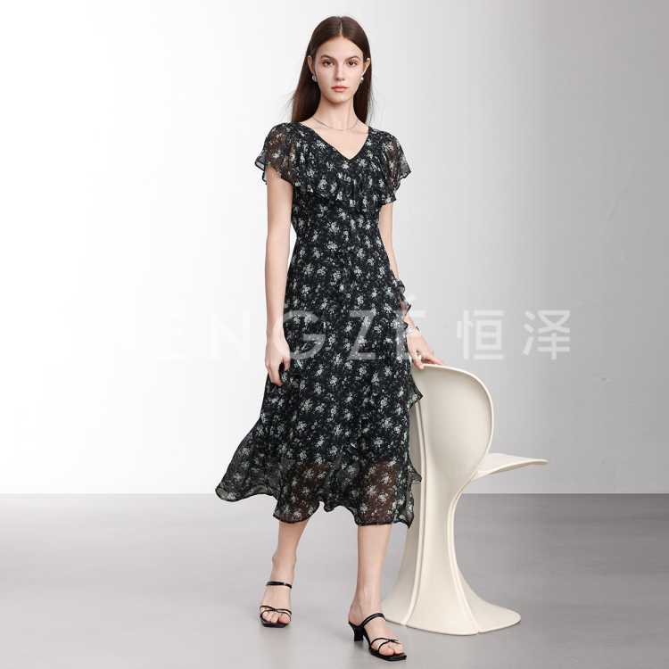 恒泽 连衣裙女夏季高级感气质2025夏季新款印花设计洋气大牌A字裙